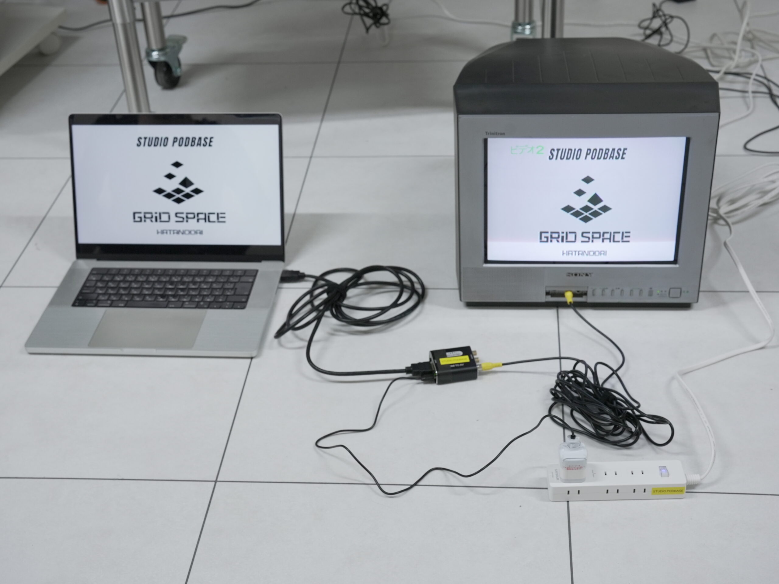 HDMIコンバーターを挟むことで、HDMI出力端子のあるパソコンなどから映像をブラウン管に出力することが可能です。これを活用することで、例えばYouTubeの対談番組などのタイルを常時出力しておくことでその番組のオリジナル感を出すことも可能です。