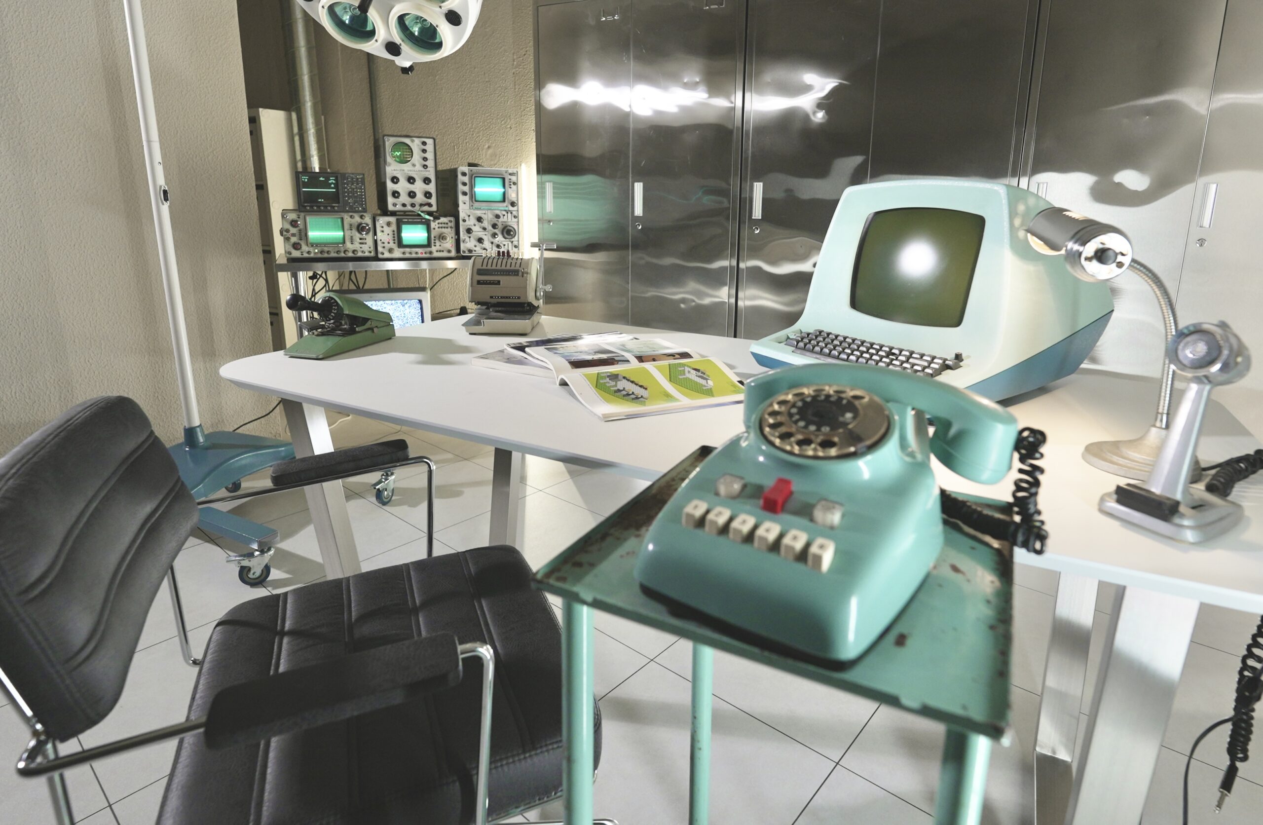あえての病院ではないシチュエーションで、シルバーのロッカーと組み合わせることで、一気に「レトロSFテイスト」が高まります。