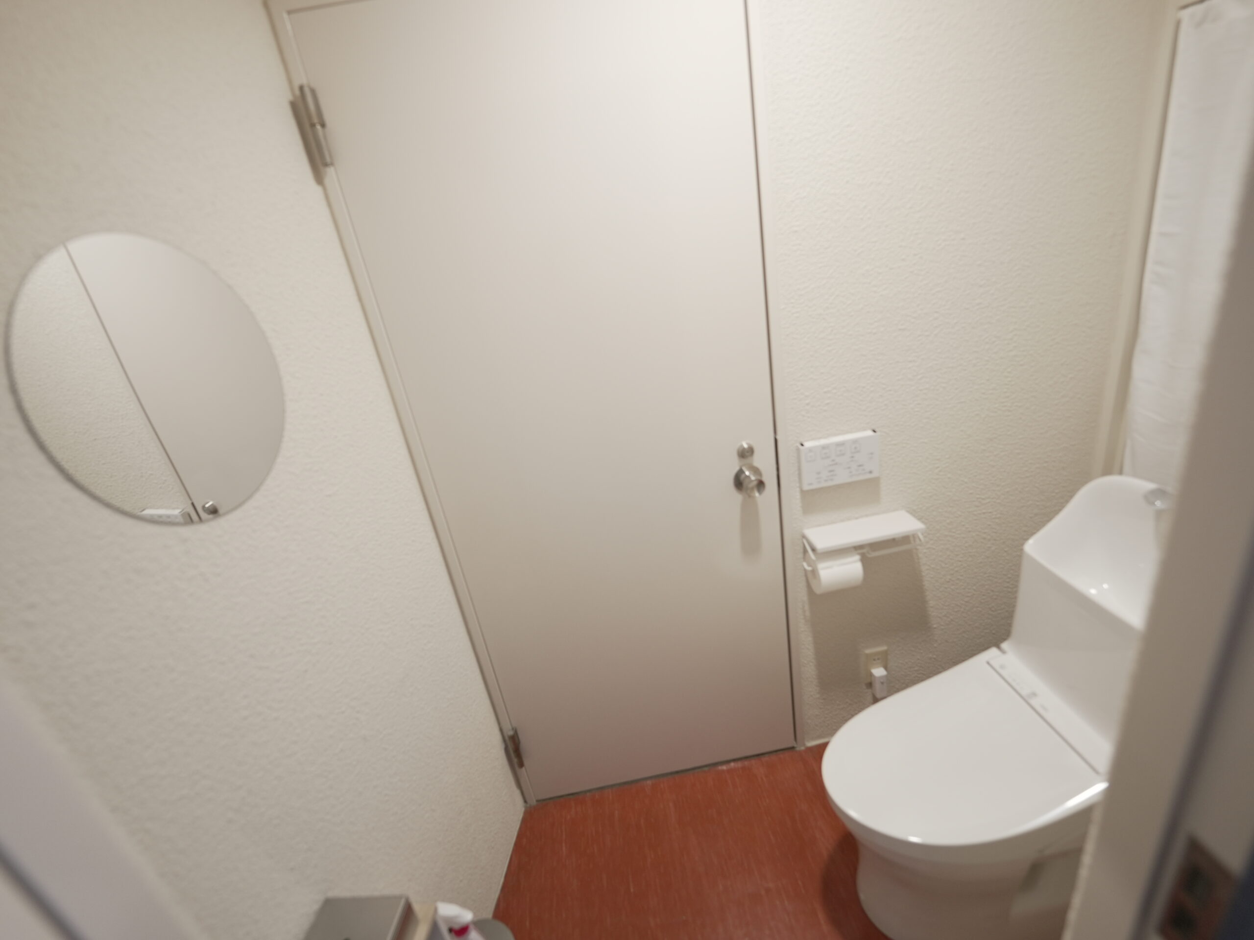 トイレは同じ室内ではなく、扉を出てすぐの個室となります。