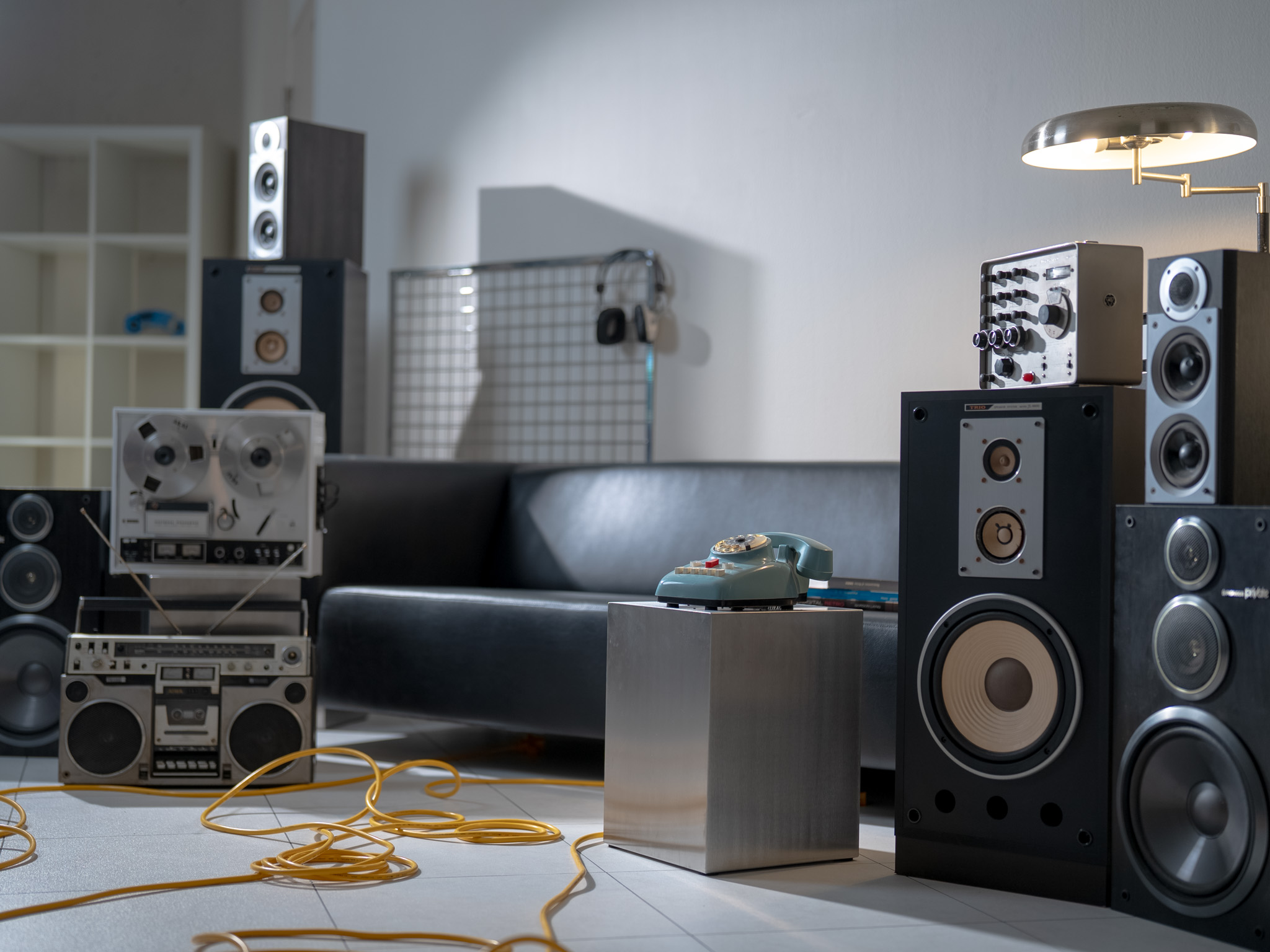 大きめのスピーカーは腰掛けることもできたりします。またラジカセも大きめのものを用意しているので、肩にかついでみたり