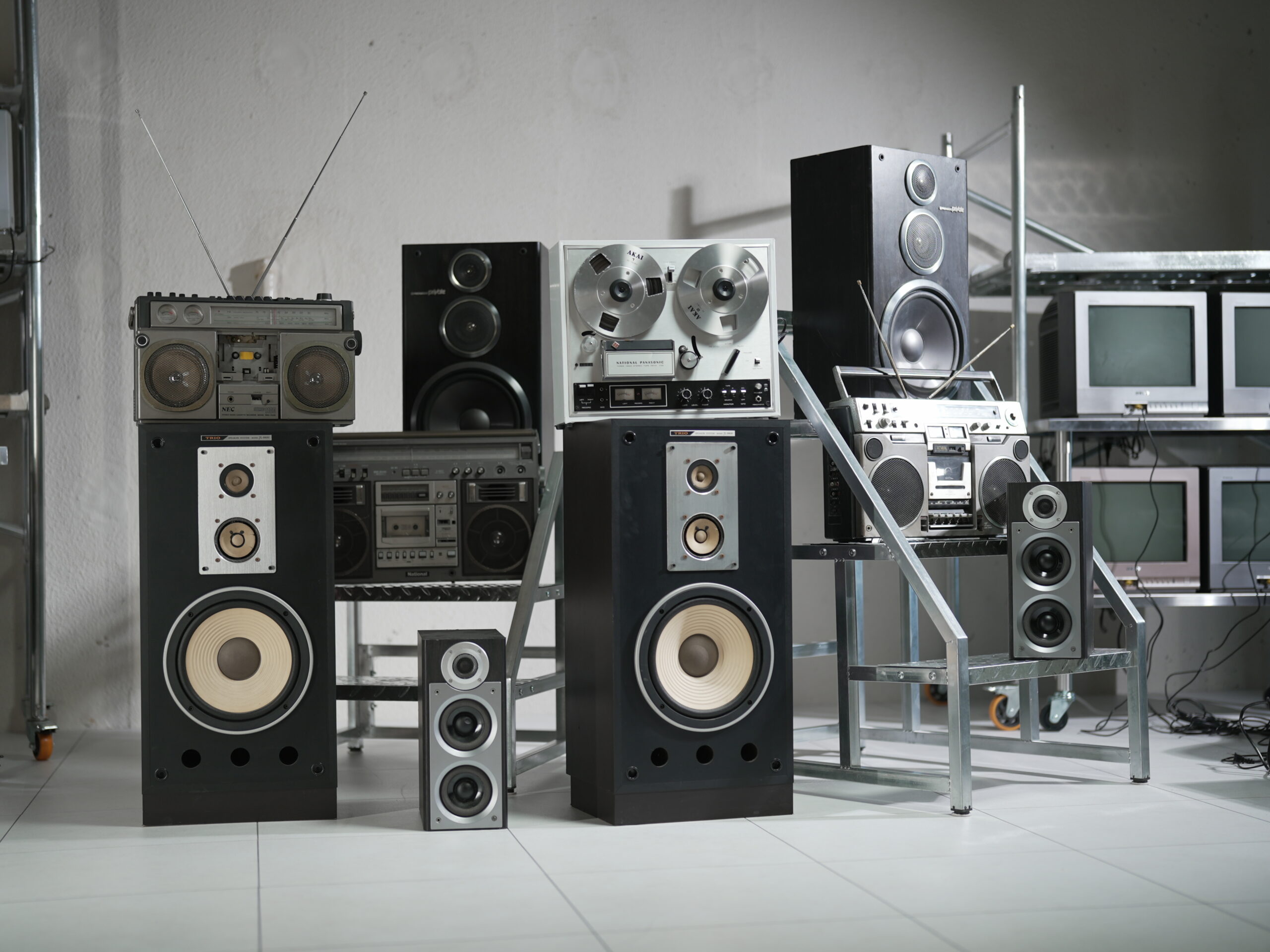 以前スタジオご利用いただいたMVの監督さんからお聞きしたのですが、YouTubeやMVでも人気のブラウン管テレビですが、実は用意するのが大変らしいです。そもそも10台以上レンタルしようと思うと、一台あたり5,000円から10,000円くらいかかるという費用的なコストと、搬入に関わる人件費や時間などの労力的なコスト、この2つのコストが重なるということを何度か耳にしました。さらにレンタルの場合、撮影日当日に動作確認をする作業リスクも非常に高いという点もブラウン管テレビがあるのはありがたいというお声でした。