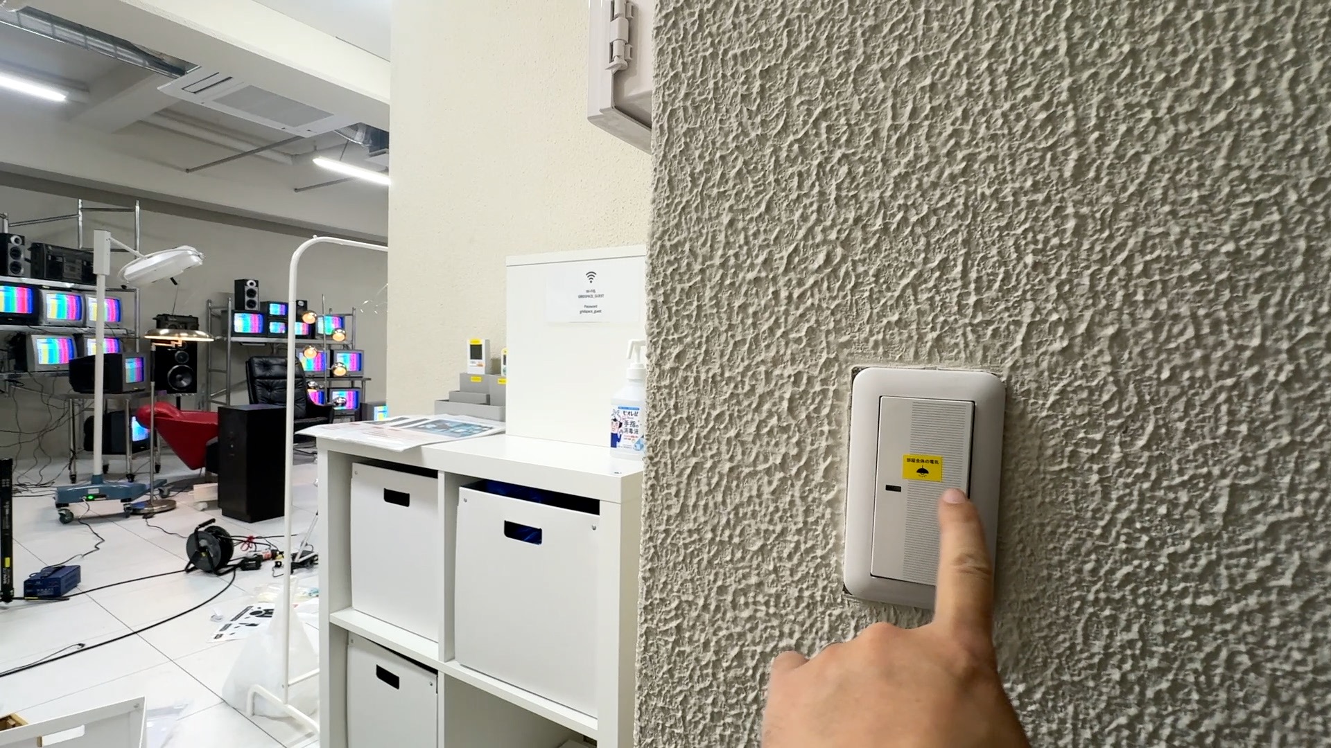 入り口入ってすぐの電源を落とすと、、、