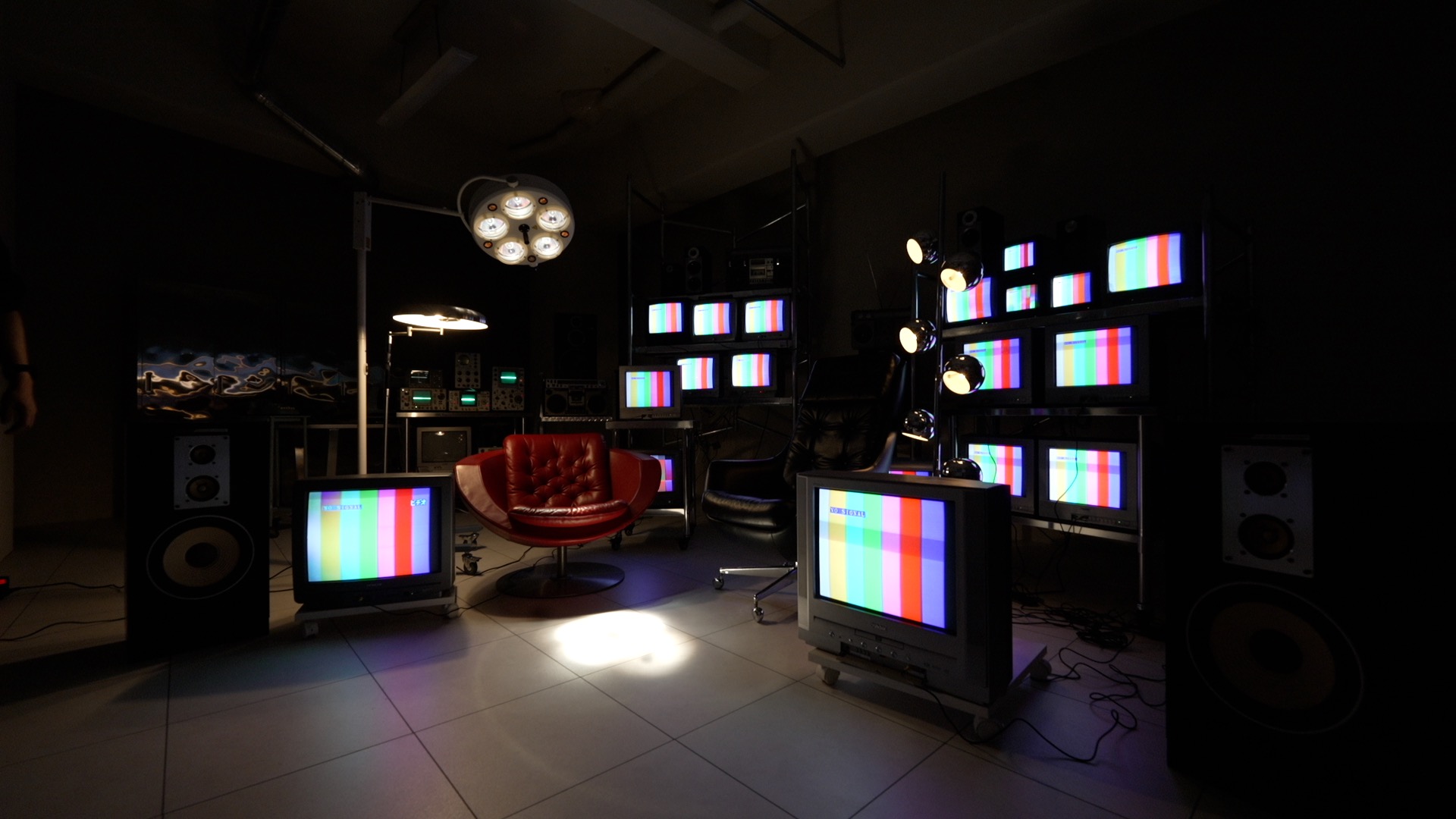 こんな感じになります。ブラウン管テレビの光が怪しく照らして、これはこれでいい雰囲気ではあったりします。ただこれだと暗すぎるのでメインのキーライトとなる照明を使います。